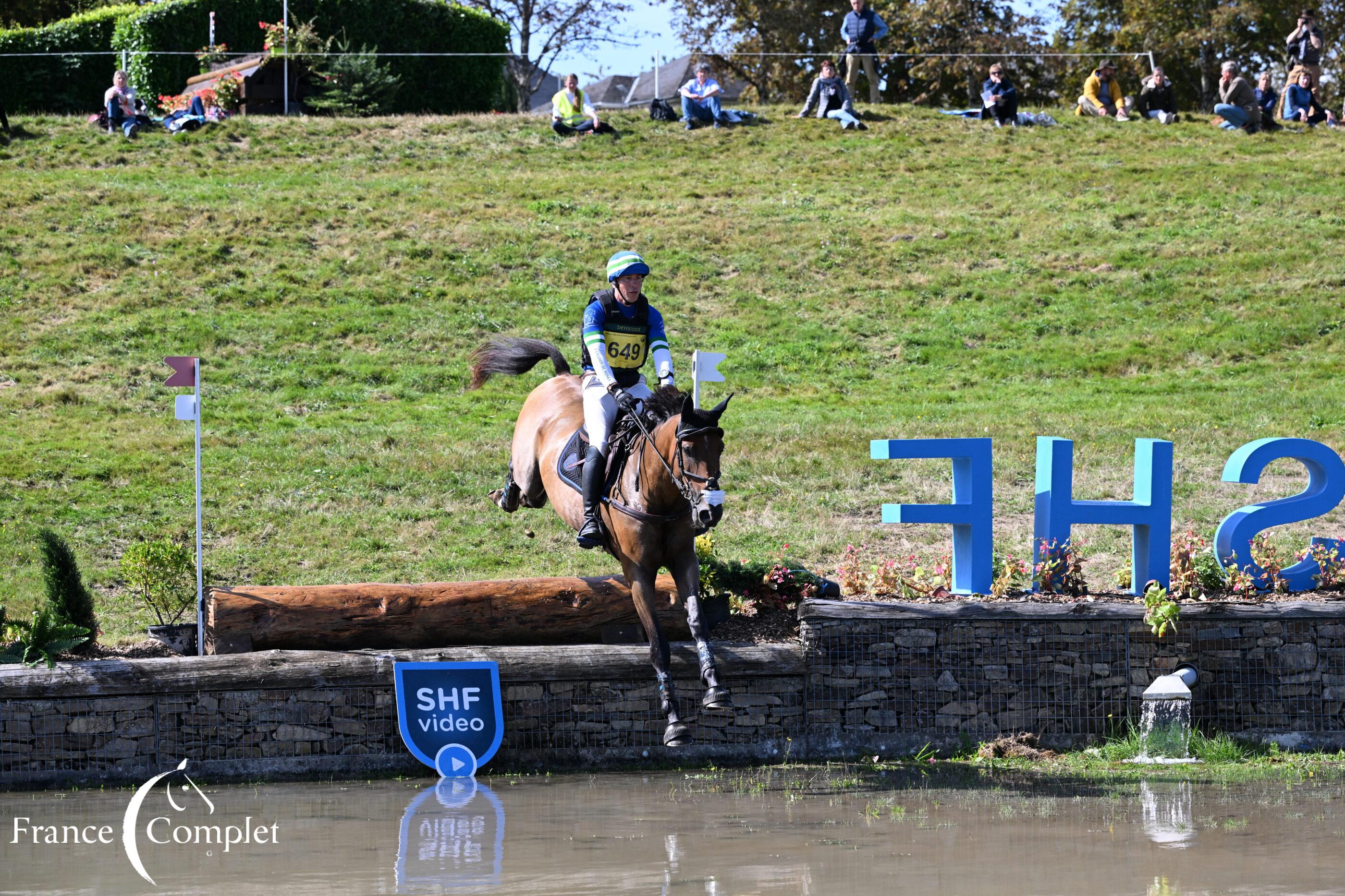 Du côté du CCIYH-2*S, support du Championnat des Chevaux de 6 ans, c’est sous la selle de Thomas Carlile que se démarquent à l’issue du cross les deux premiers chevaux au classement provisoire. Il s’agit d’IMPERIALE DAM, jument Selle-Français par Contendro*GFE et Réalité du Thot par Hermès d’Authieux, en tête en 25,8pts, et de ILIADE DE KERSER, la grise vice-championne des 5 ans en 2023 par Untouchable M et Riane de Verez par Hoggar Mail. IN TEXO ROSE que présentait Charlotte Bordas et en tête après le dressage fait malheureusement séparation de corps avec sa cavalière. C’est ITO DE LORTENIA qui vient compléter le podium provisoire, un produit signé Upsilon et Naiade du Thot par Socrate de Chivre qui évolue sous la selle de Fabrice Saintemarie.