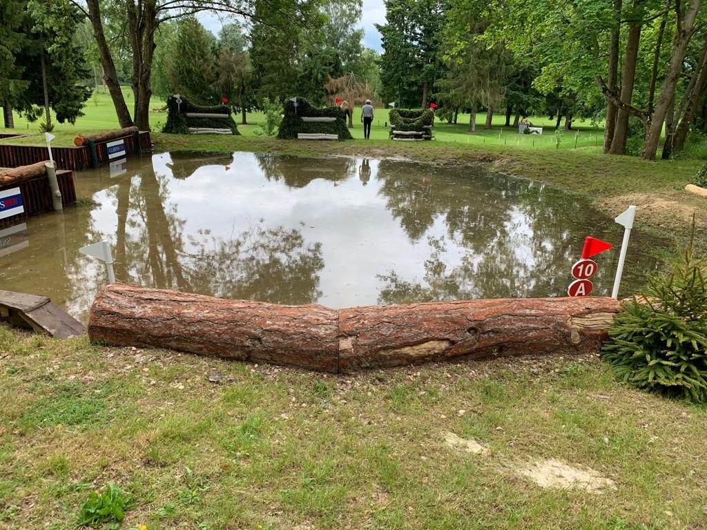 Pierre Barki est allé marcher le cross du CCI3*S aux côtés de Guillaume Blanc, le délégué technique, pour vous faire découvrir ces magnifiques obstacles. On commence avec le numéro 1 (photo ci-dessus) : un joli tronc sous une haie avec un sapin de chaque côté ainsi que deux haches et un bouquet de fleurs qui décorent cet obstacle. Le numéro 2 où l’on peut voir un mur de pierres avec sa table en bois décorée de jolies fleurs.