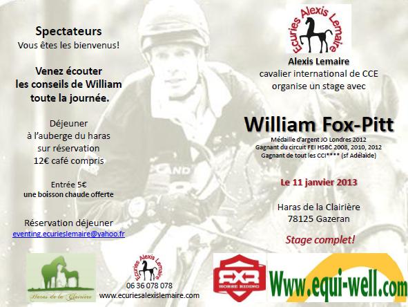 Les Ecuries Alexis Lemaire organisent un stage avec William Fox-Pitt ce vendredi 11 janvier, avec